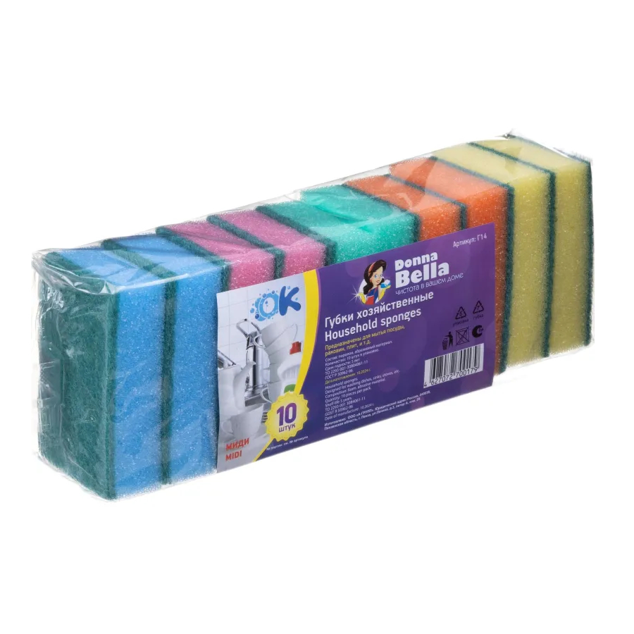 —Губка для мытья посуды Donna-Bella 8*5,3*2,6см, 10 шт (1579094)