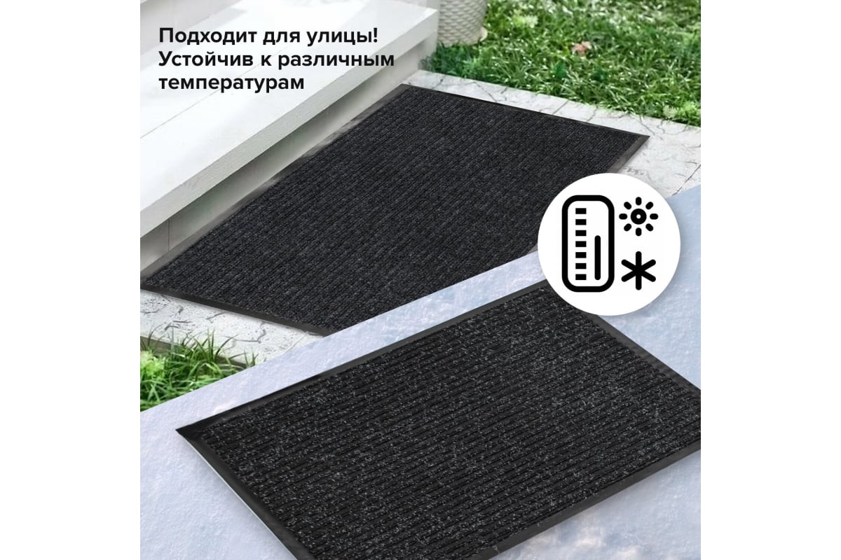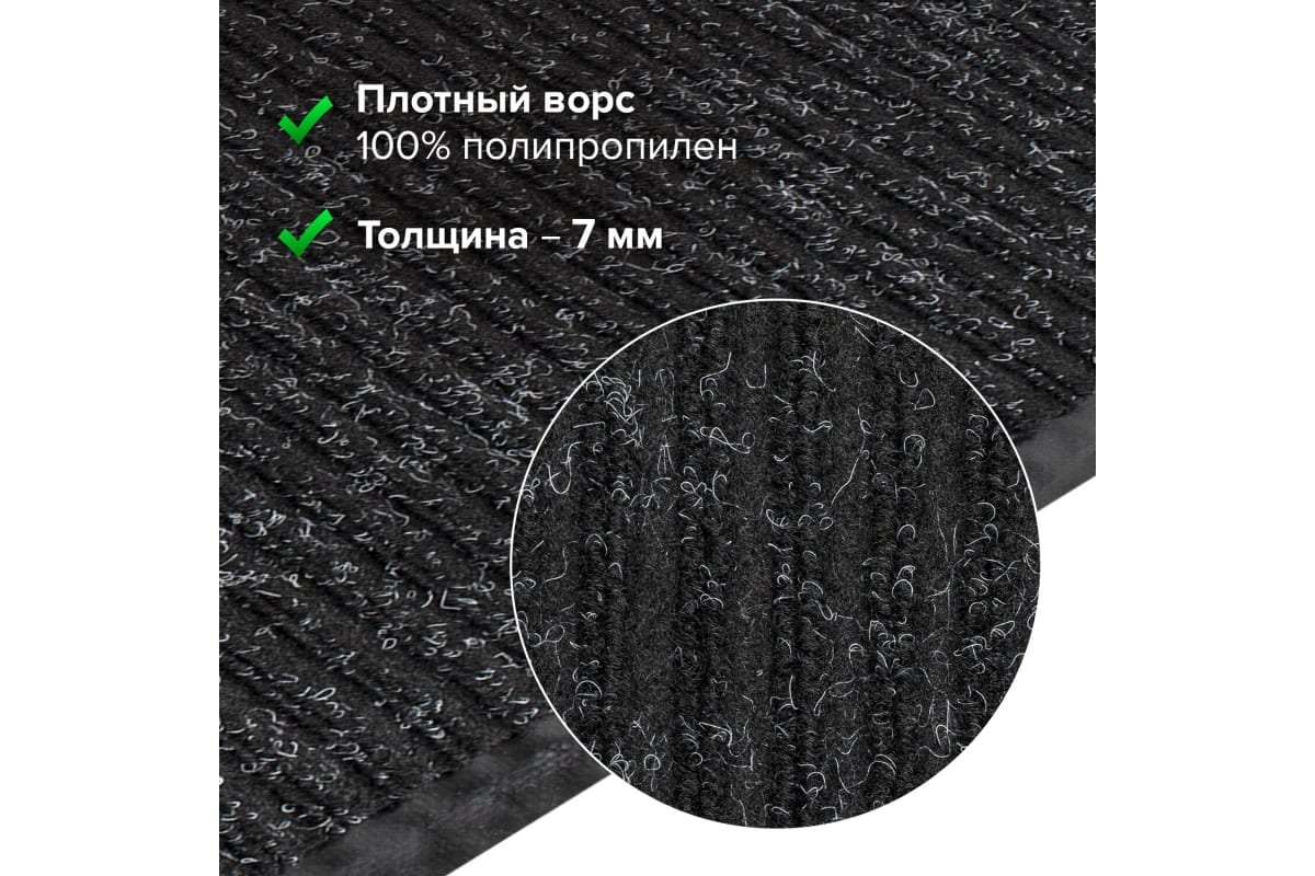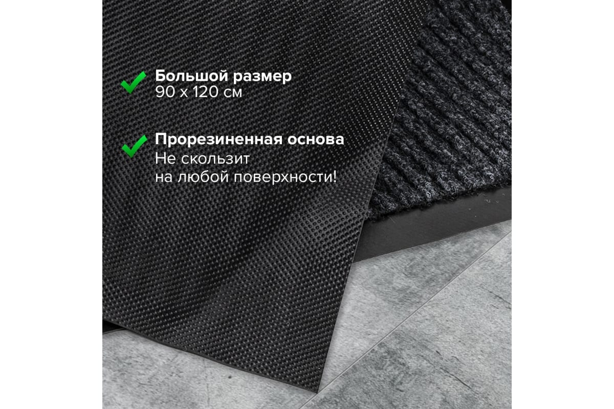 —Коврик входной влаговпитывающий, ворсовый, ребристый ЛАЙМА, 90*120см, черный (602874)