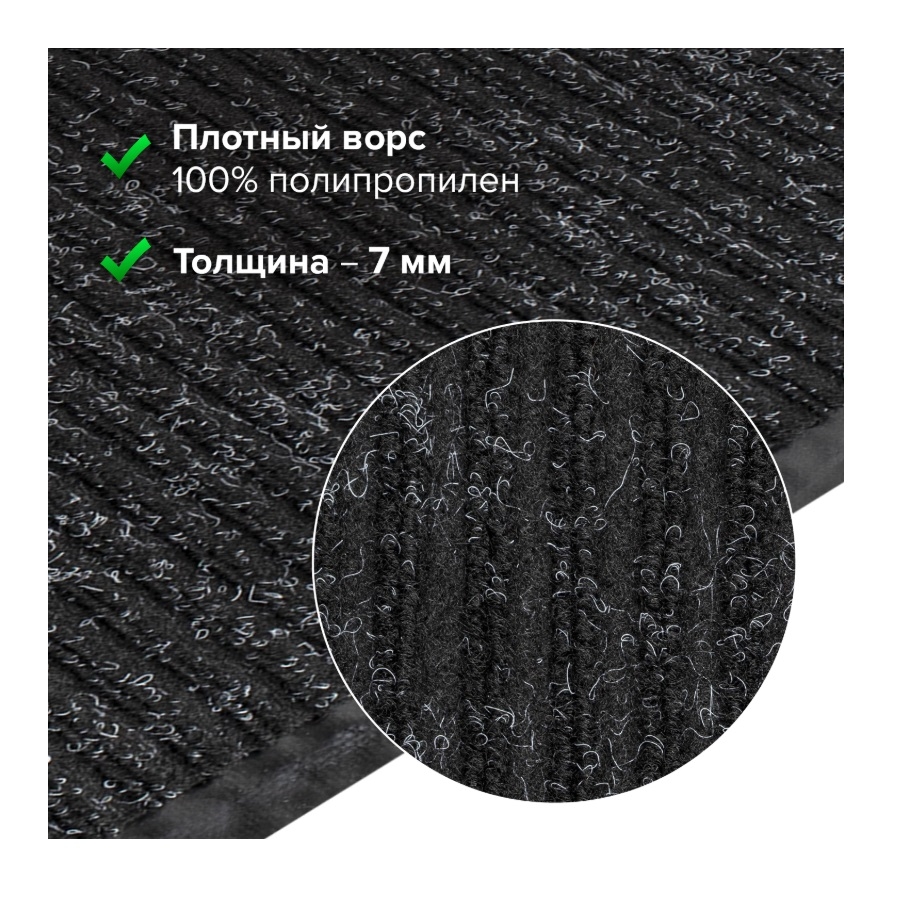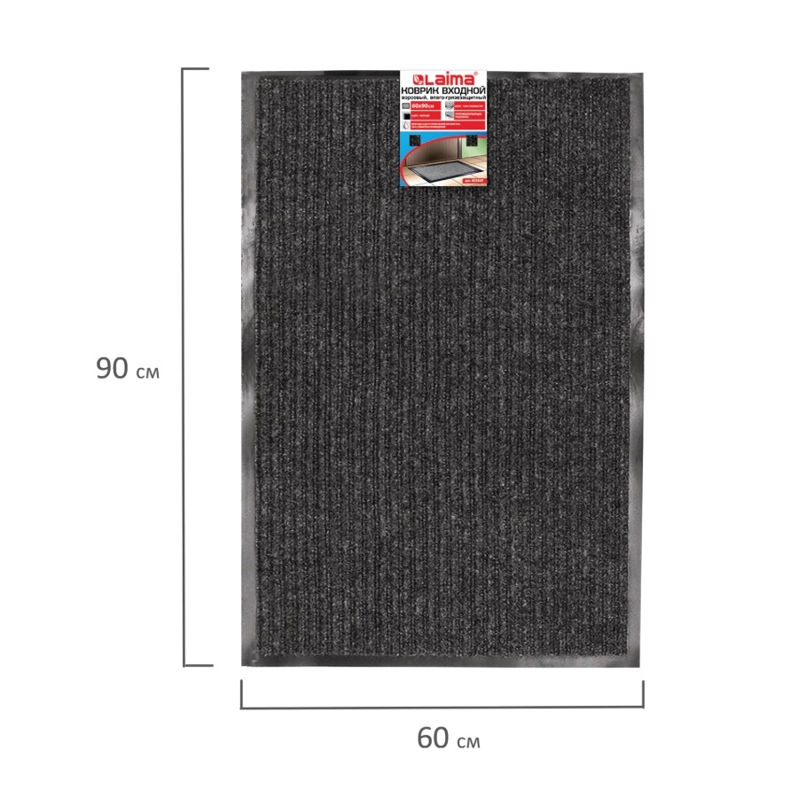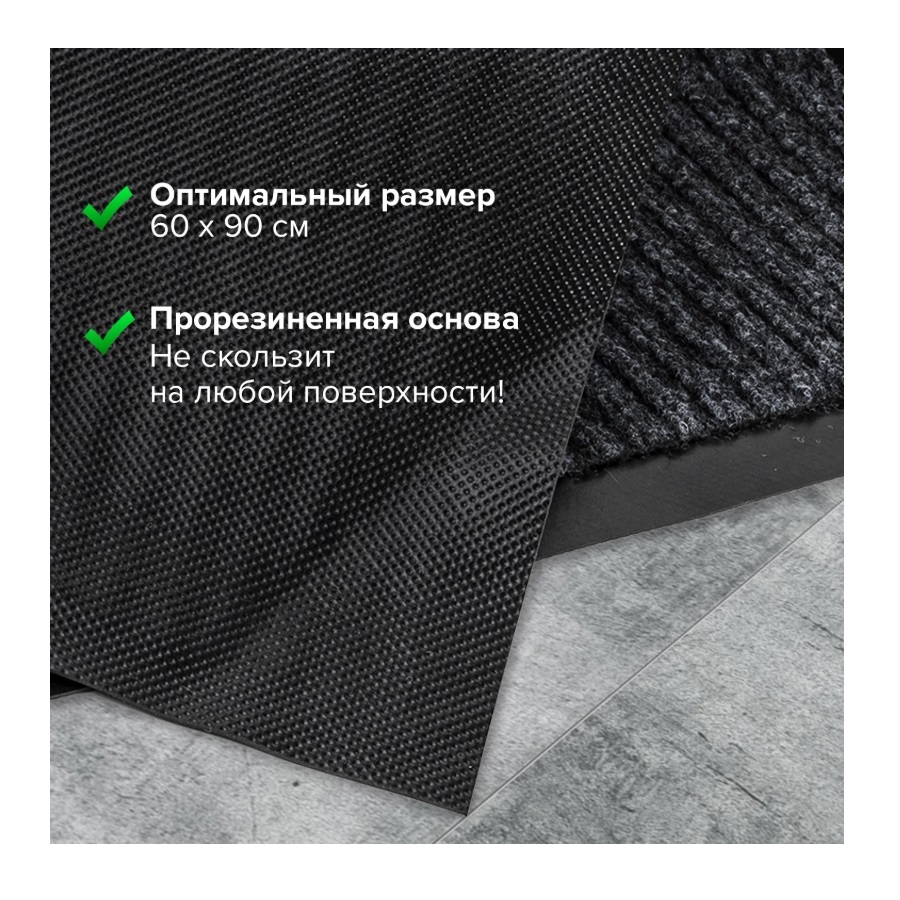 —Коврик входной влаговпитывающий, ворсовый, ребристый ЛАЙМА, 60*90см, черный (602869)