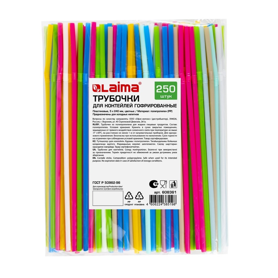 —Трубочки для коктейля 250 шт (590244) ВЕСЕЛАЯ ЗАТЕЯ
