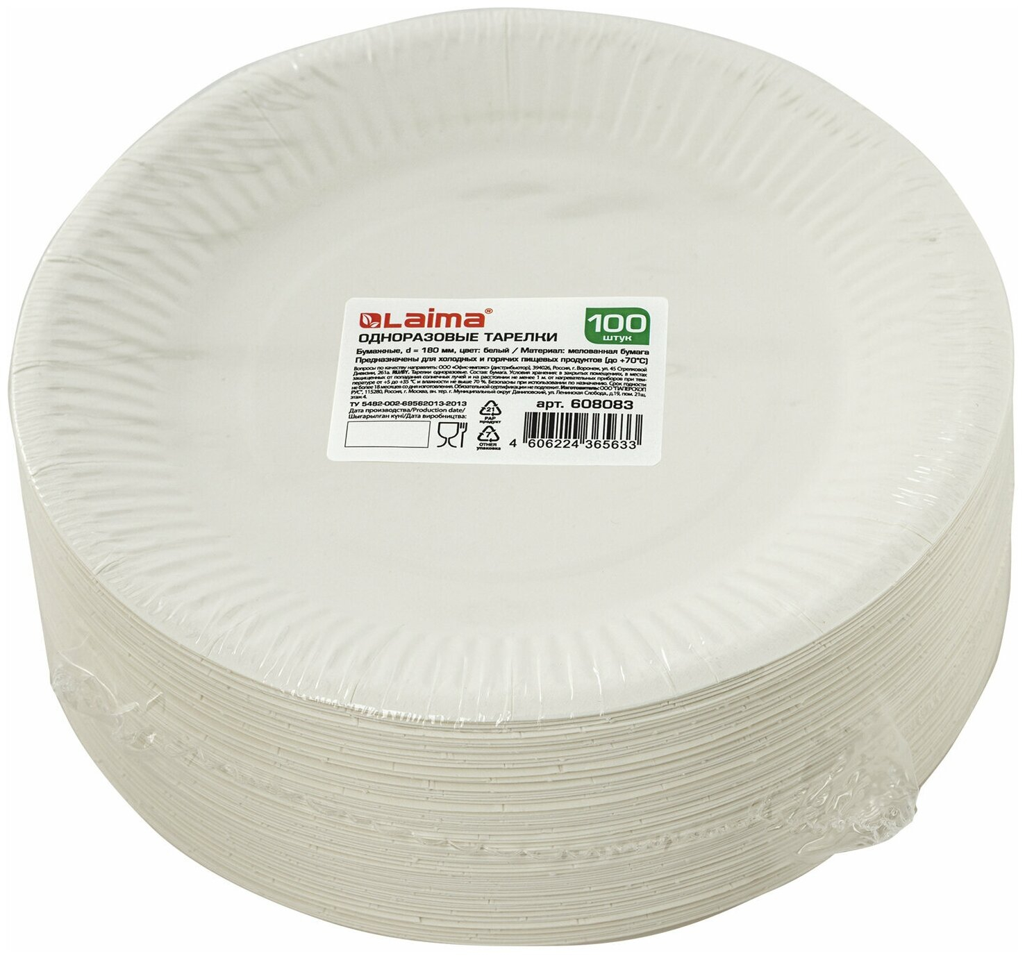 —Одноразовая тарелка ЛАЙМА, D180, 100шт (608083)