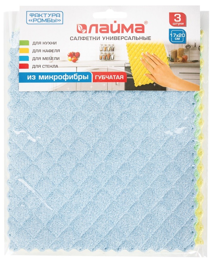 —Салфетка из микрофибры 17*20см. ЛАЙМА универсальные, 3шт (606657)