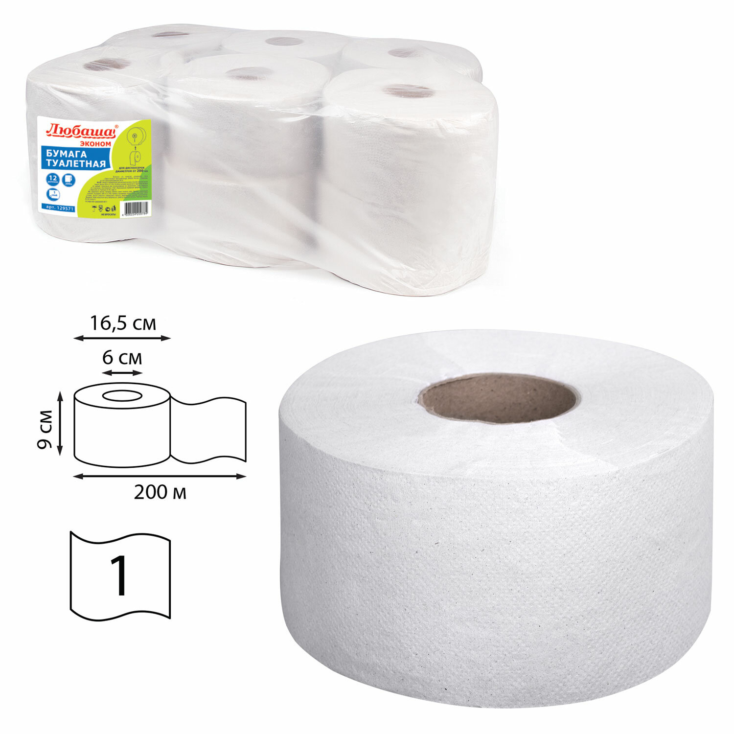 —Туалетная бумага ЛЮБАША (T2), 200м, 1-сл, цвет серый (129571)
