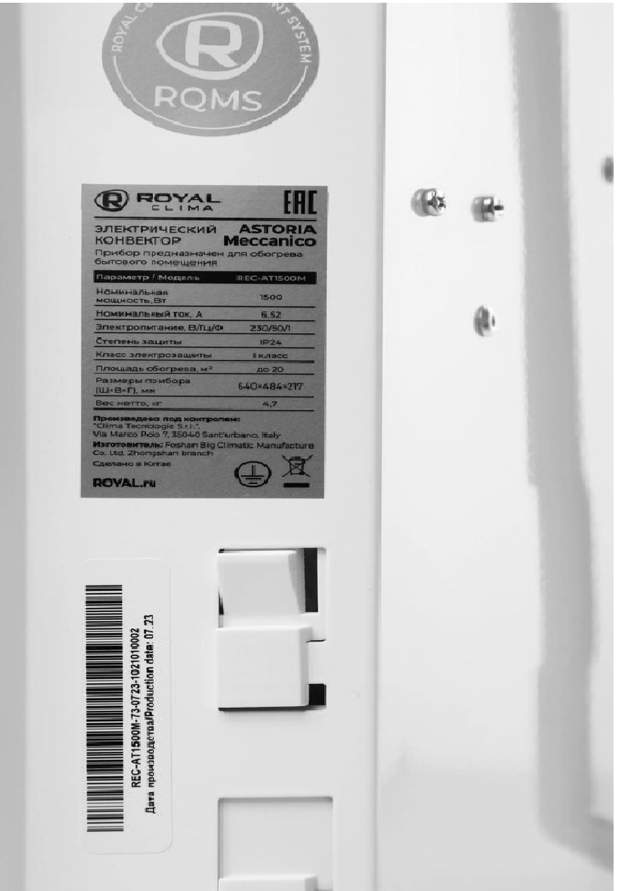 —Конвектор ROYAL Clima REC-AT1500M 1500Вт, 20кв.м, настенный/напольный