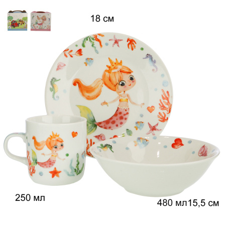 Набор детской посуды 3пр Русалка С652 (691572) фарфор