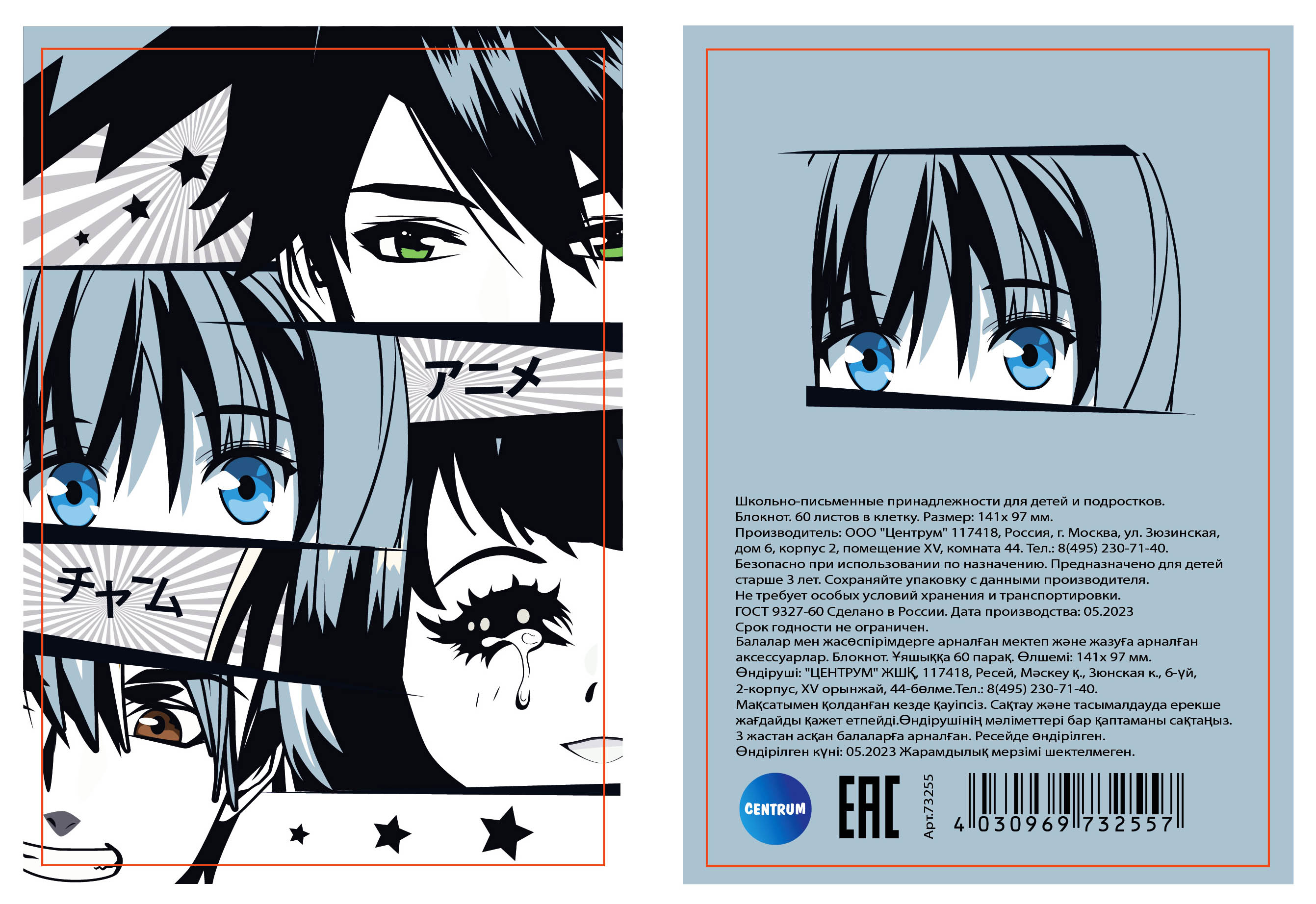 Блокнот Centrum А6 60л."Аниме чёрно-белое" гребень 73255
