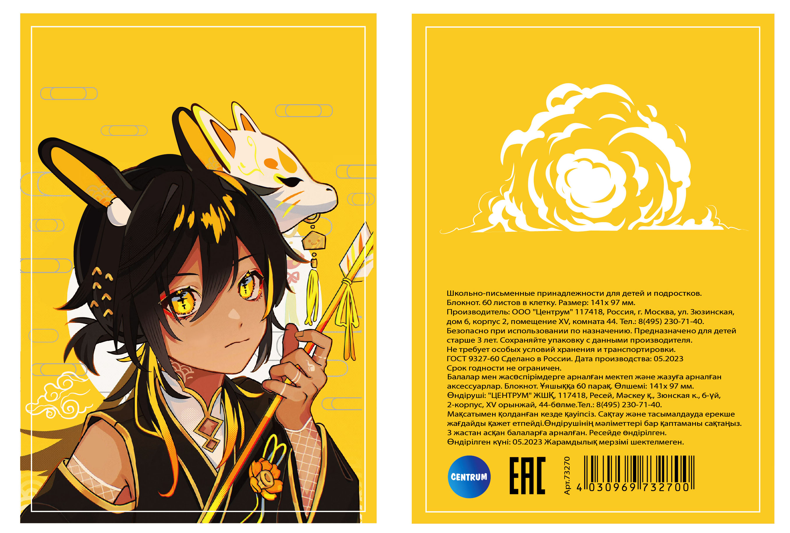 Блокнот Centrum А6 60л."Мальчик. Аниме жёлтый" гребень 73270