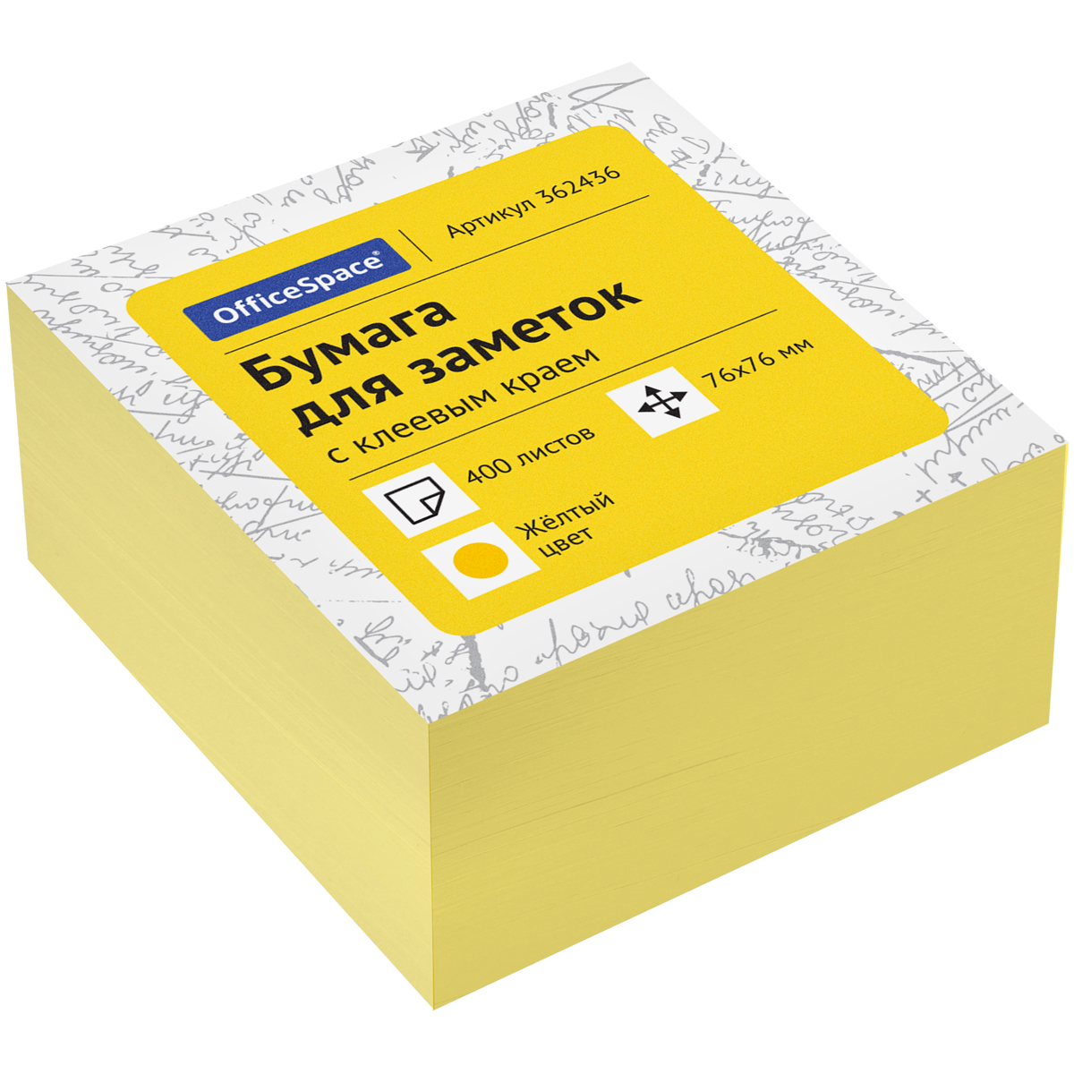 Блок самоклеящийся OfficeSpace 76*76мм. 400л. пастель, желтый (362436)