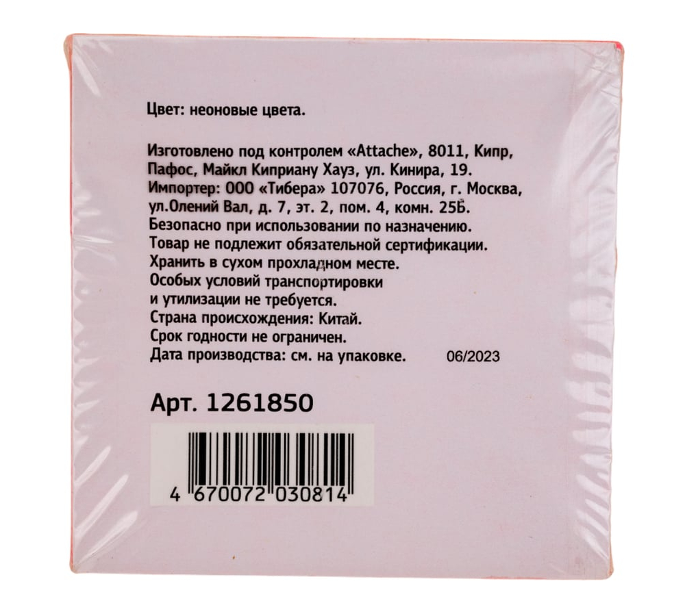 —Блок самоклеящийся Attache 76*76мм. 400л. 5цв. неон (1261850)