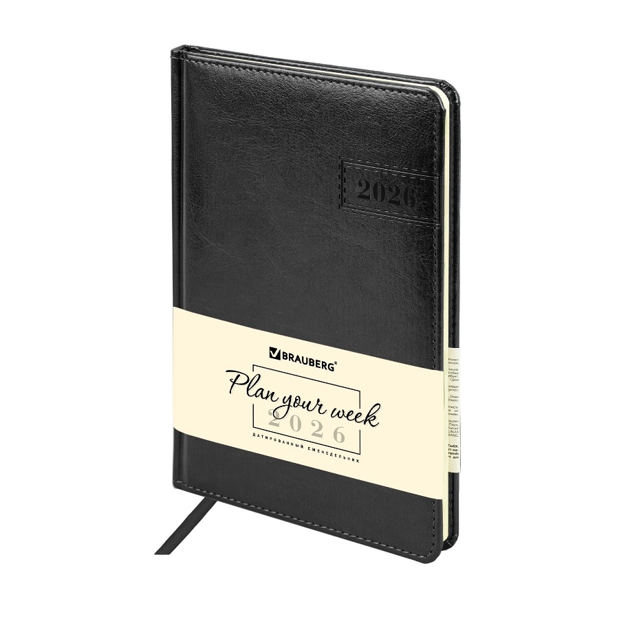 —Еженедельник BRAUBERG A4 2026г. "Imperial" черный (117175)