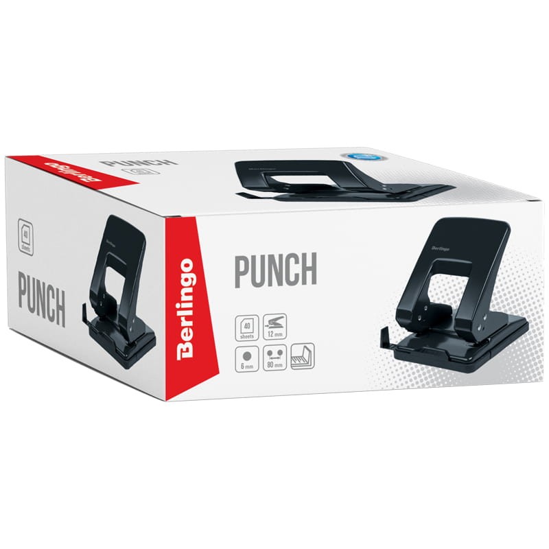 —Дырокол BERLINGO на 40л. металл., черный с линейкой (DDm_40071)