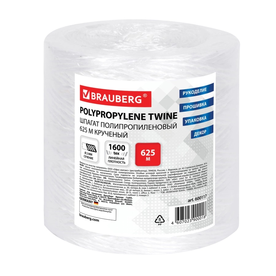 —Шпагат полипропиленовый BRAUBERG, 2мм, длина 625м (600117)
