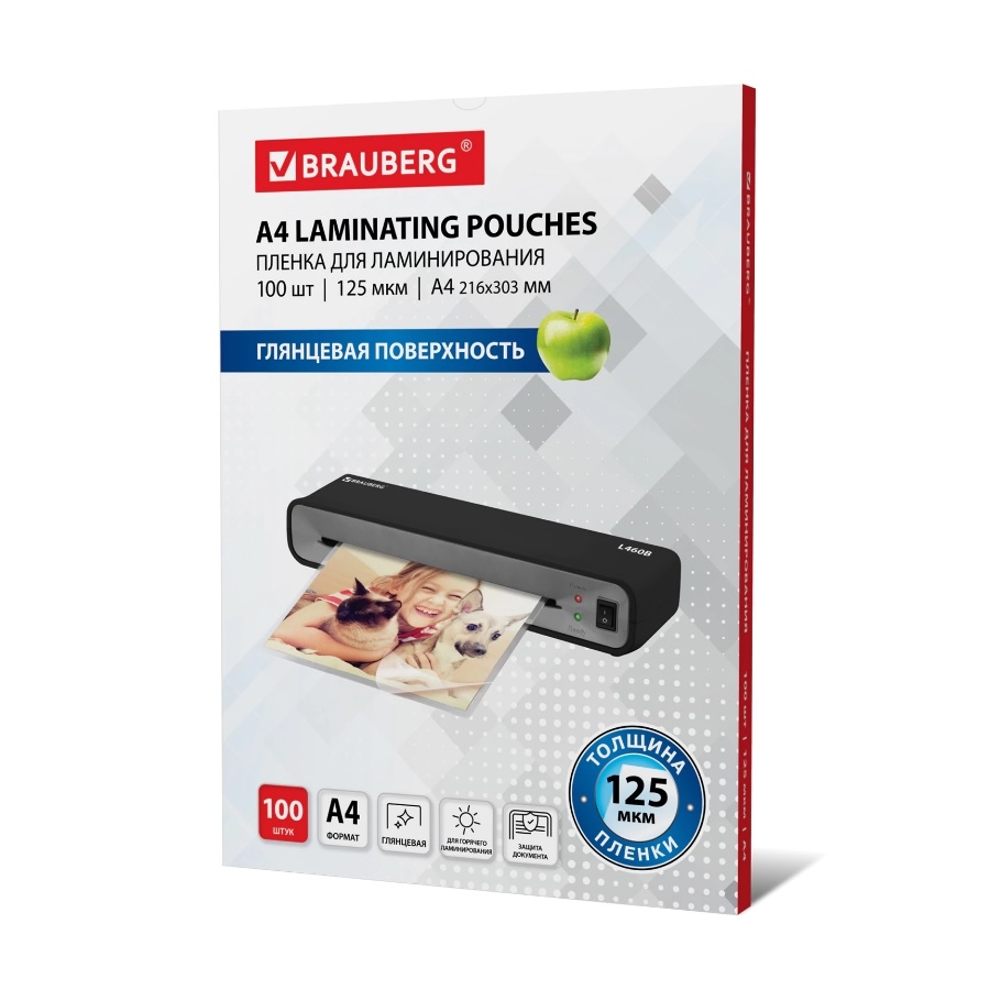 Пленка для ламинирования А4, 125мкм, 100шт. BRAUBERG (530803)
