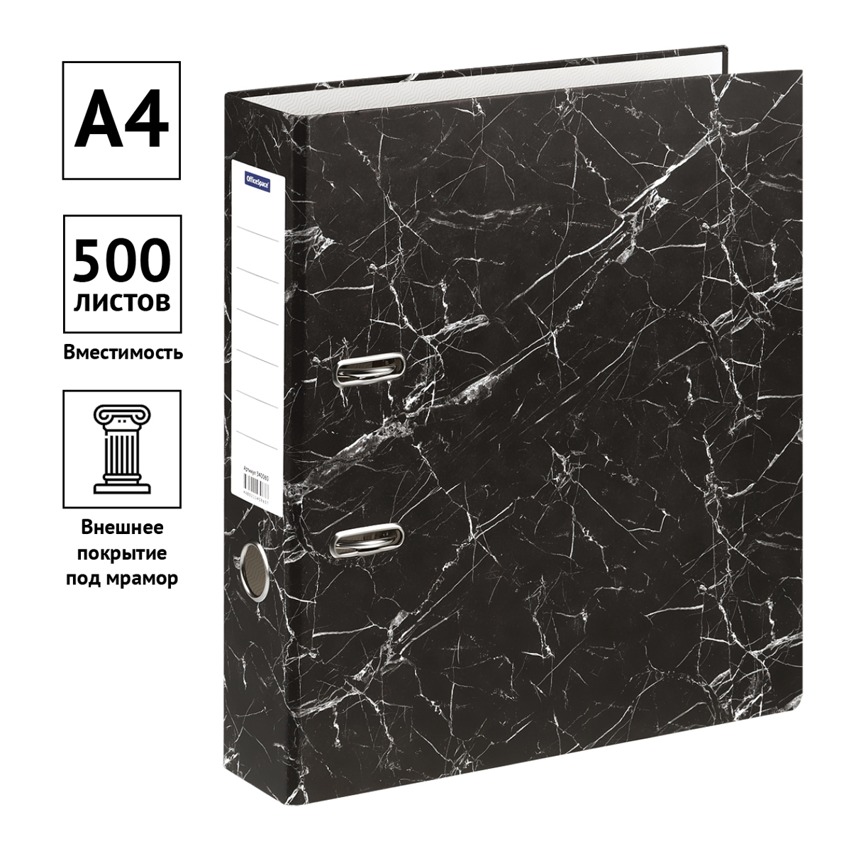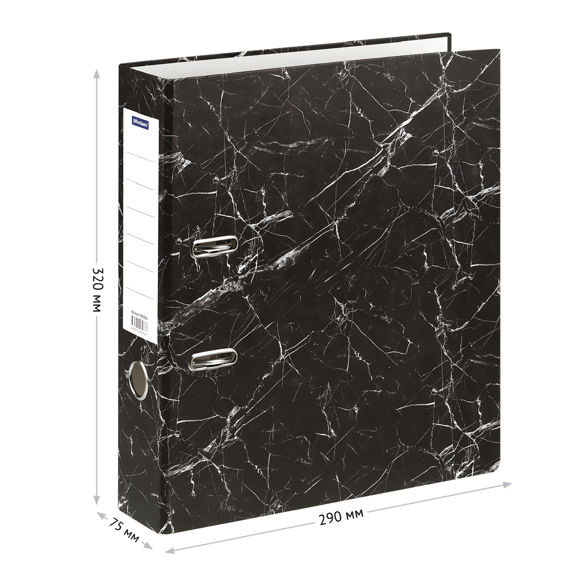 —Папка-регистратор 75мм. OfficeSpace мрамор, бюджет, черная (340060)