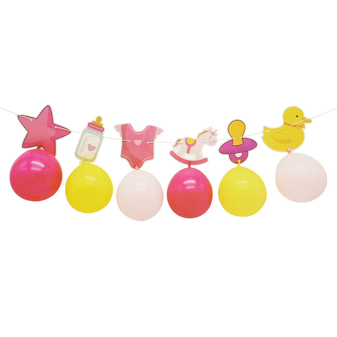 Бумажная гирлянда "Рождение девочки" розовый, с шарами, 1м, 23713