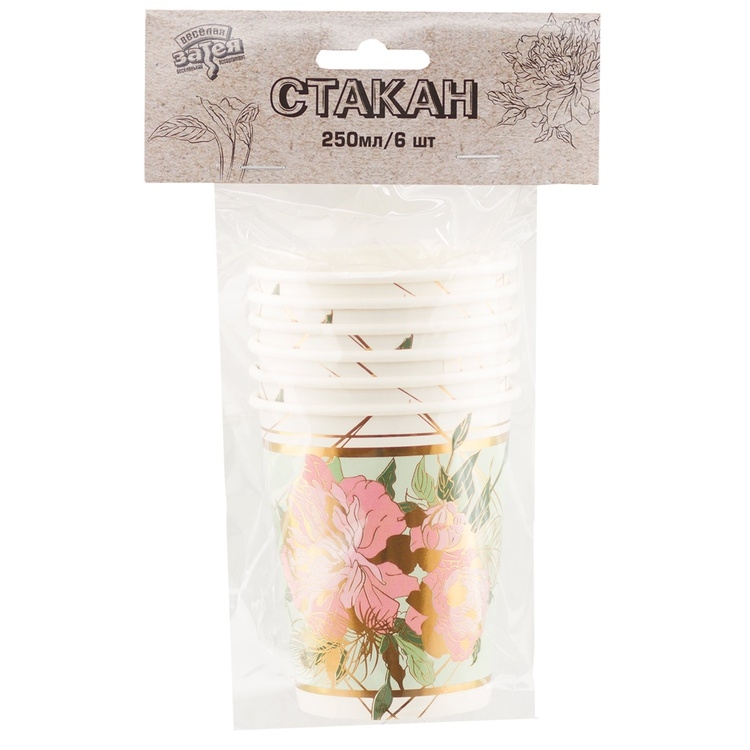 —Бумажные стаканы "Пионы" 6шт (1502-4511)