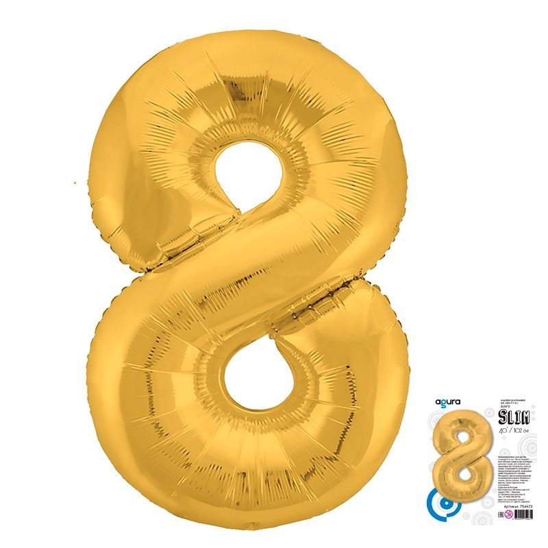 —Цифра надувная "8 Золото Slim" 102см, фольгированная (754672)