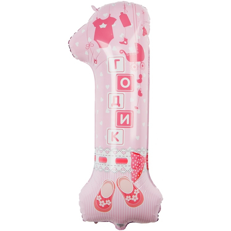 —Шар воздушный "Цифра 1, розовый" 101 см. фольгир., (1207-3882)