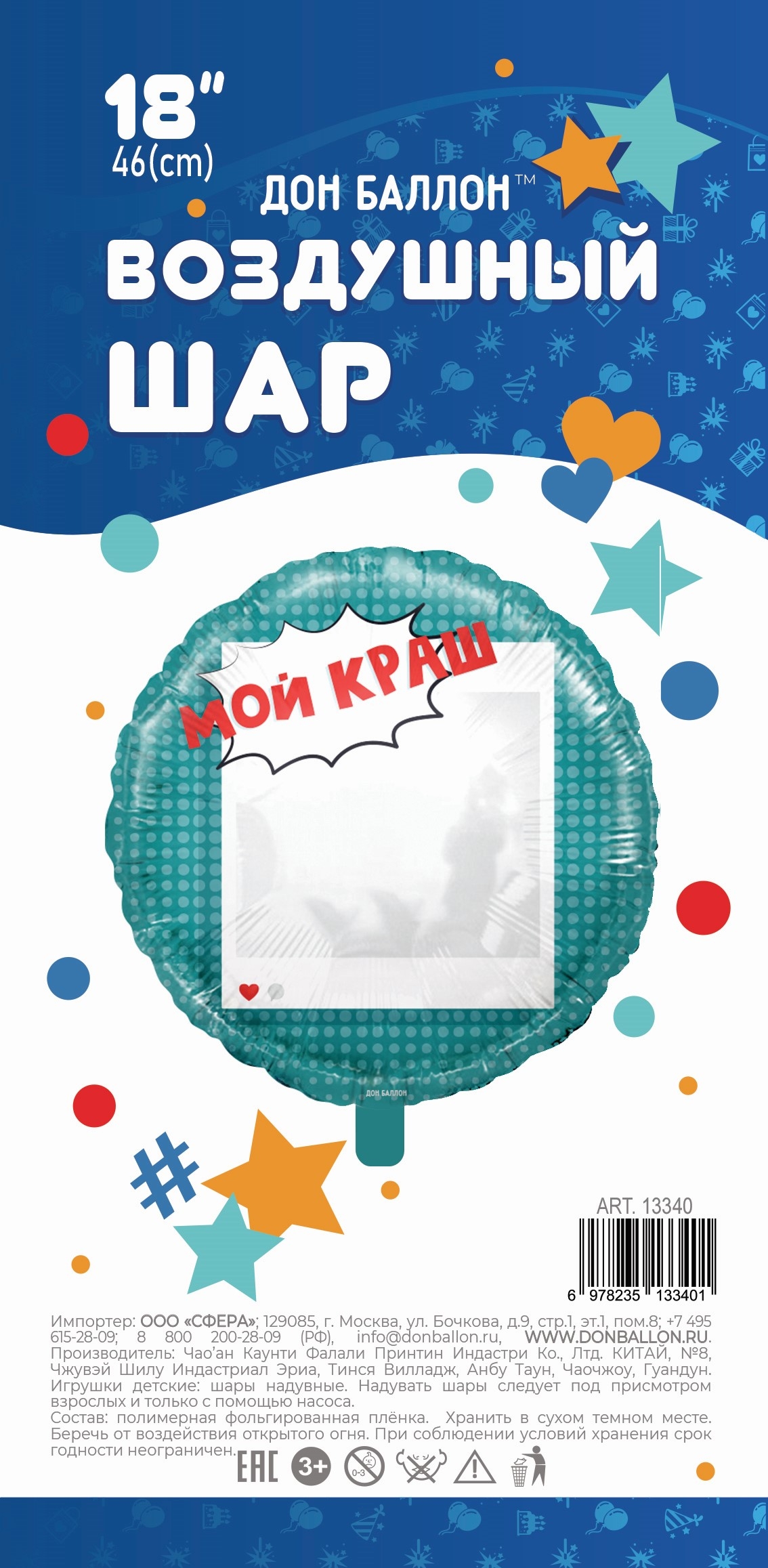 —Шар воздушный "Мой краш" 46 см. фольгир., (13340)