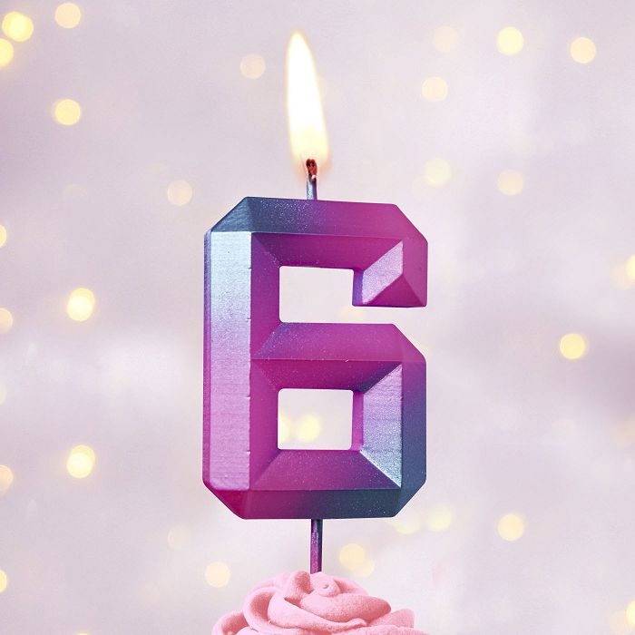 —Свеча "Цифра 6" Пурпурные грани. 4,3см. Омский свечной (6466)