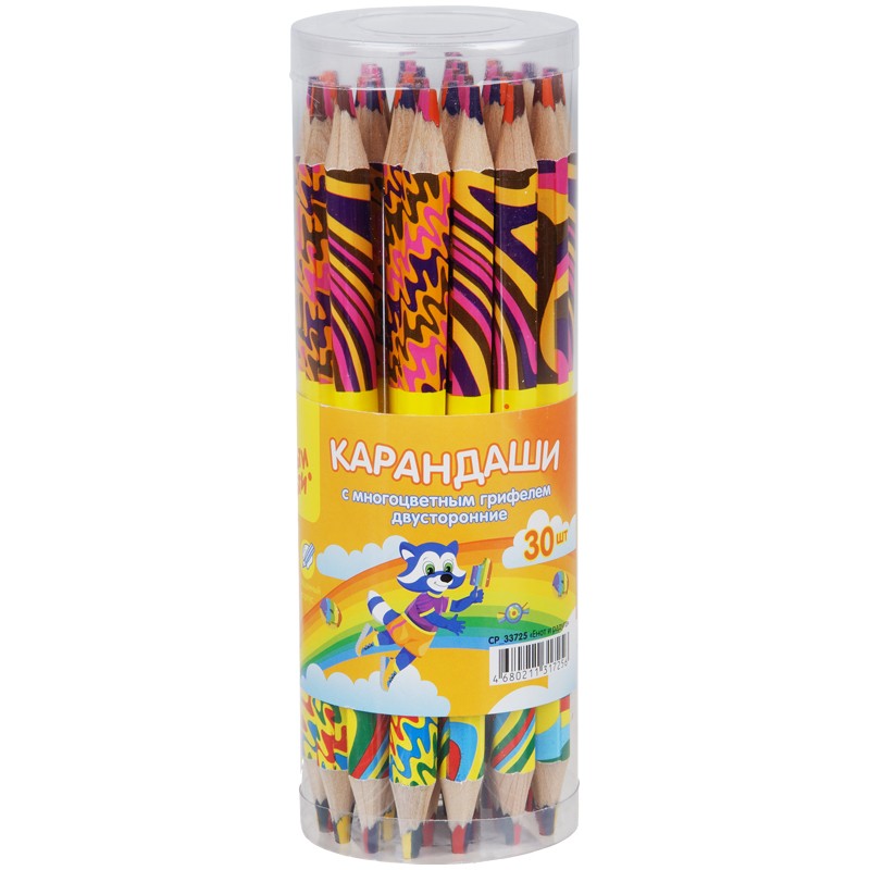 Карандаш Мульти-Пульти "Енот и радуга" с многоцветным грифелем, утолщенный, двусторонний CP_33725