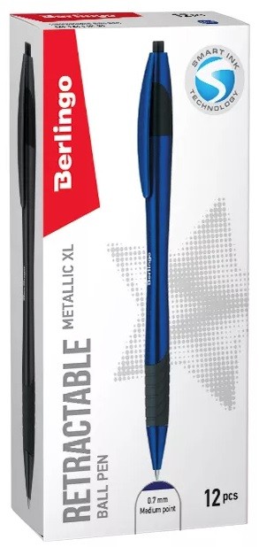 Ручка шариковая BERLINGO "Metallic XL" 0,7мм., автомат, синяя (CBm_70782)