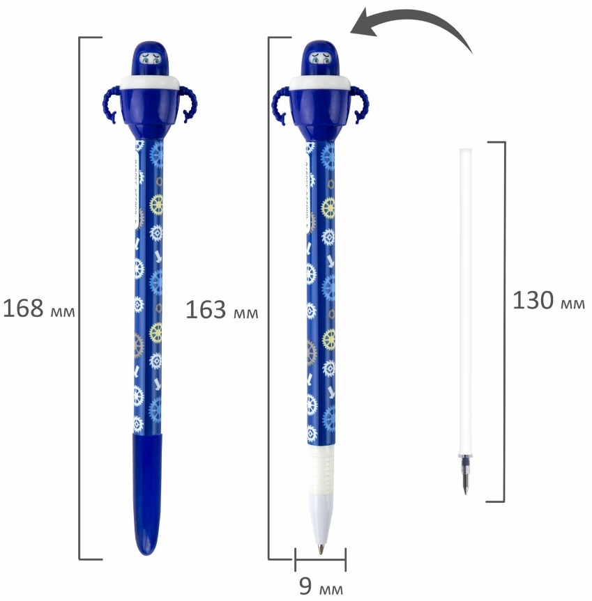 —Ручка шариковая ЮНЛАНДИЯ "Робот" 0,7мм, синяя (143790)