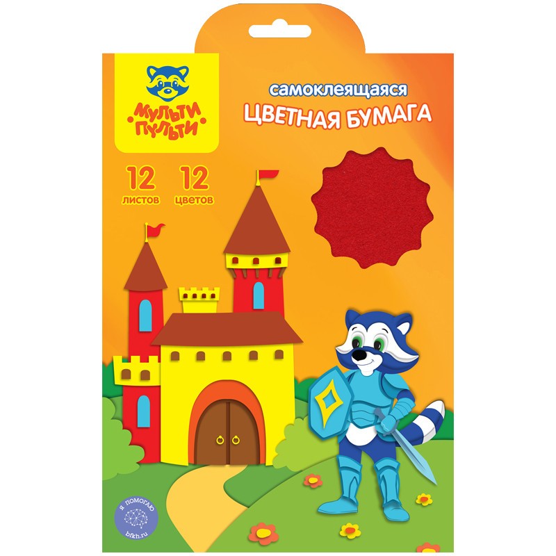 Бумага цветная А5 Мульти-Пульти, 12л., 12цв., самоклеящаяся БС12А5_11097