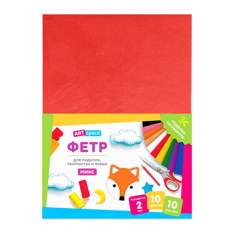 Фетр цветной А4 ArtSpace "Микс" 10л. 10цв., Фц10_38036