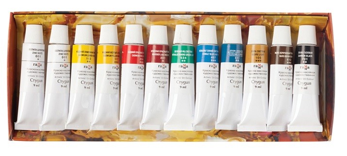 —Краски масляные 10цв.+2 белых ГАММА "Студия"туба 09мл. (203007)