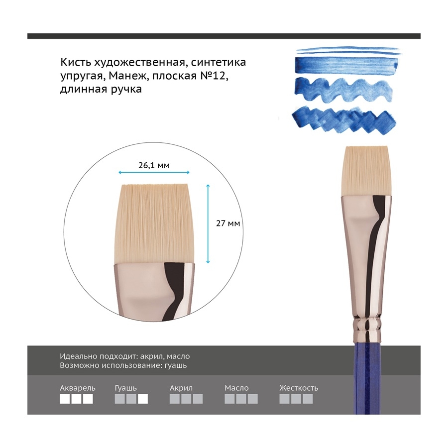 Кисть ГАММА "Манеж" №12 плоская, синтетика, упругая, художественная (501012)