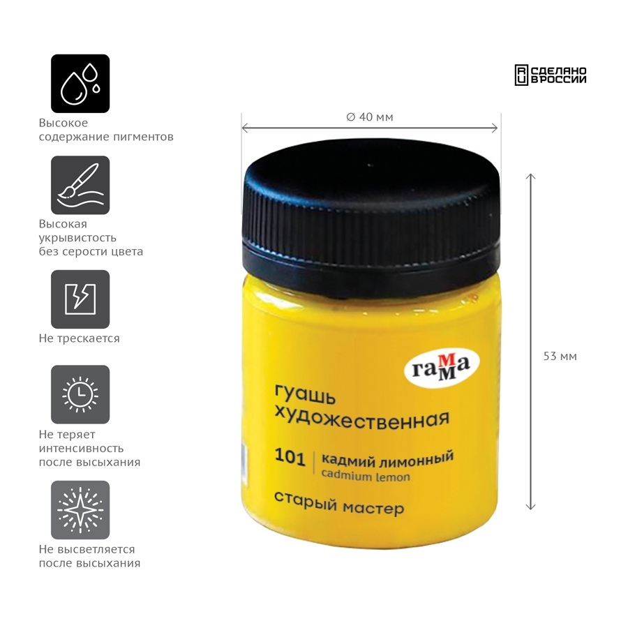 —Гуашь ГАММА "Старый Мастер" 40мл, кадмий лимонный (12112040101)