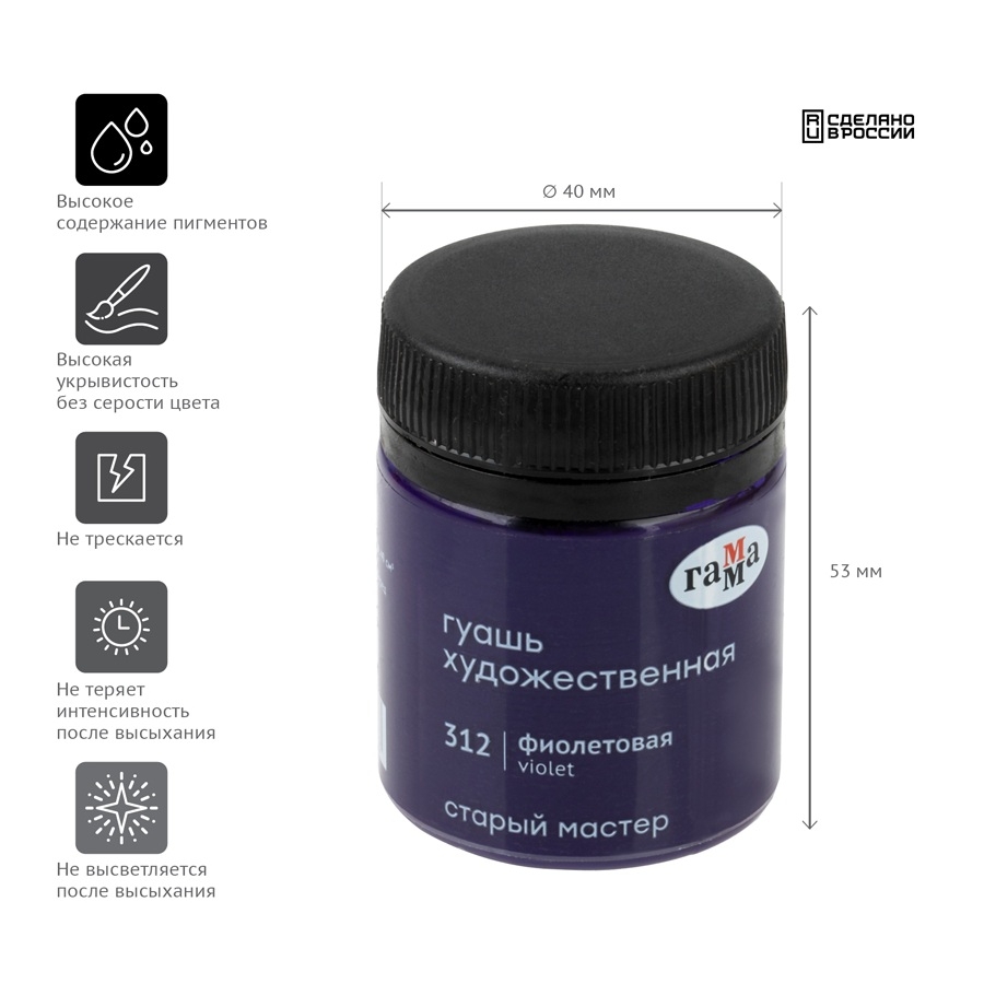 Гуашь ГАММА "Старый Мастер" 40мл, фиолетовая (12112040312)