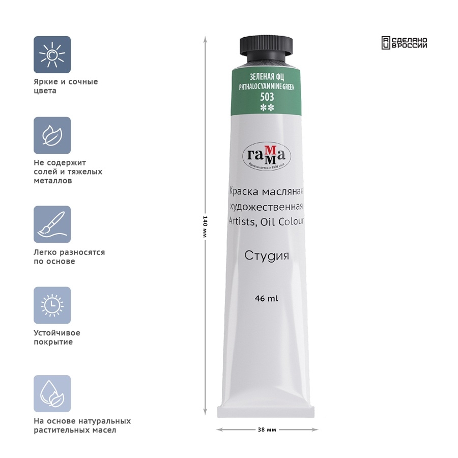Краска масляная Гамма "Студия", 46мл, туба, зеленая фц (0.00.А046.503)