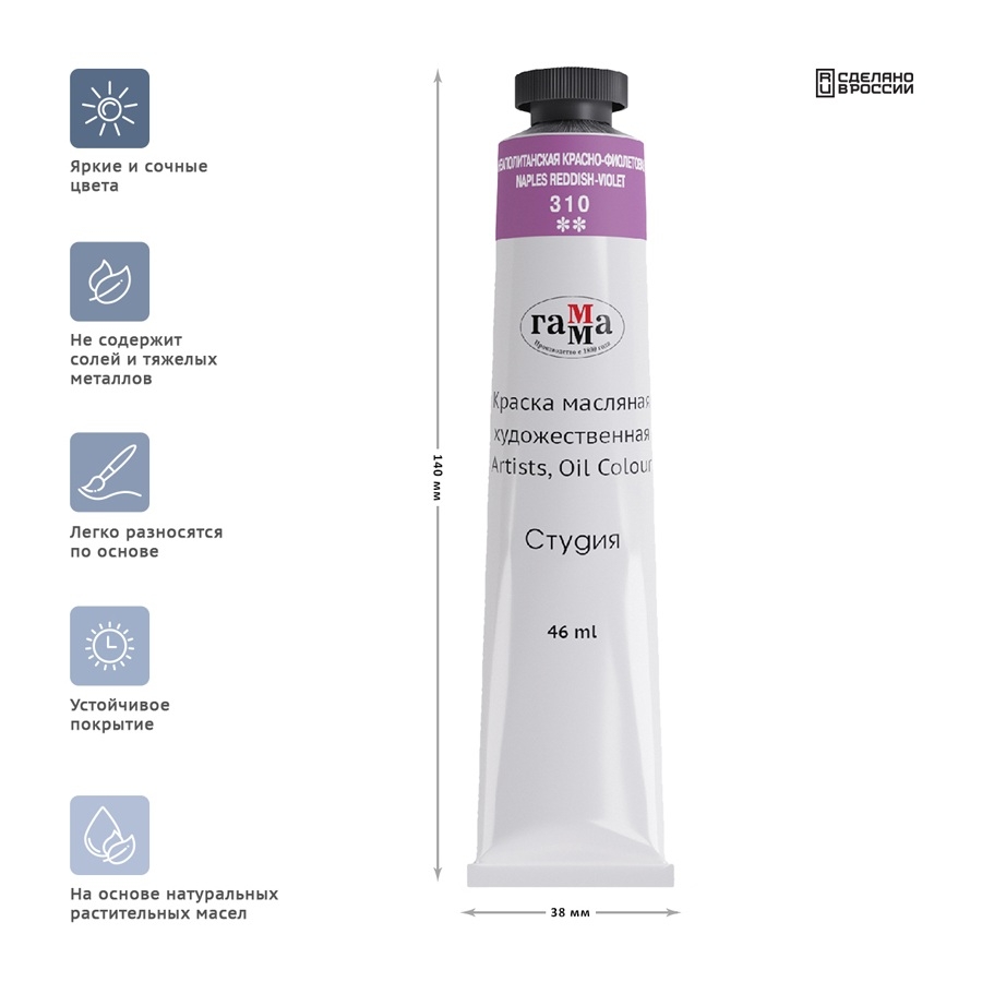 Краска масляная Гамма "Студия", 46мл, туба, неаполитанская красно-фиолетовая (0.00.А046.310)
