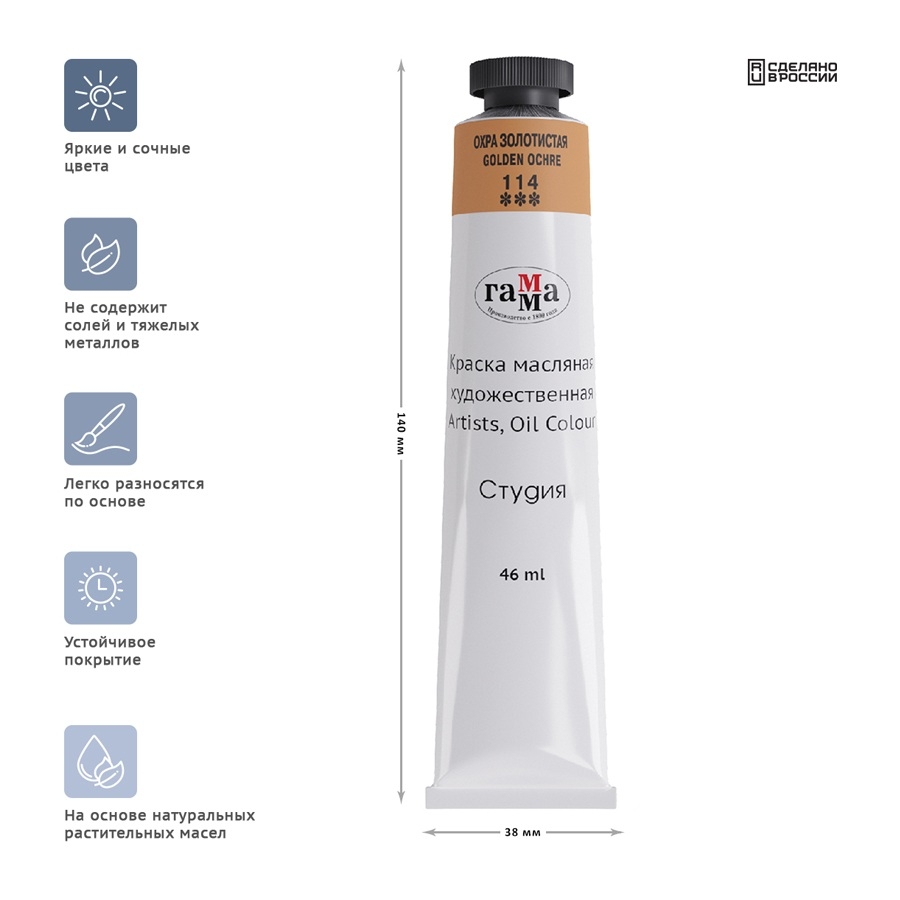 Краска масляная Гамма "Студия", 46мл, туба, охра золотистая (0.00.А046.114)