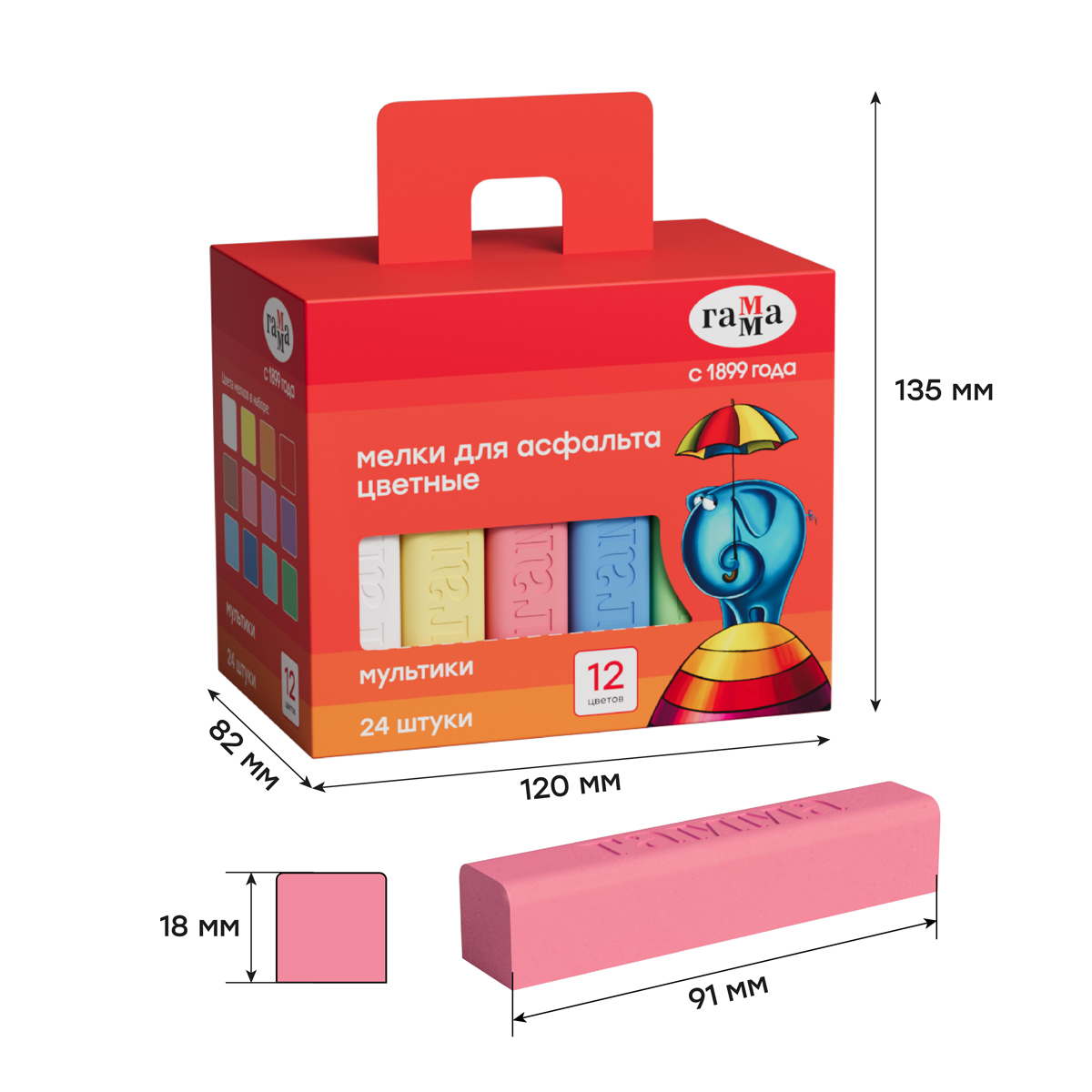 —Нaбор цветного мела 24цв. Гамма "Мультики" для асфальта (9022324)