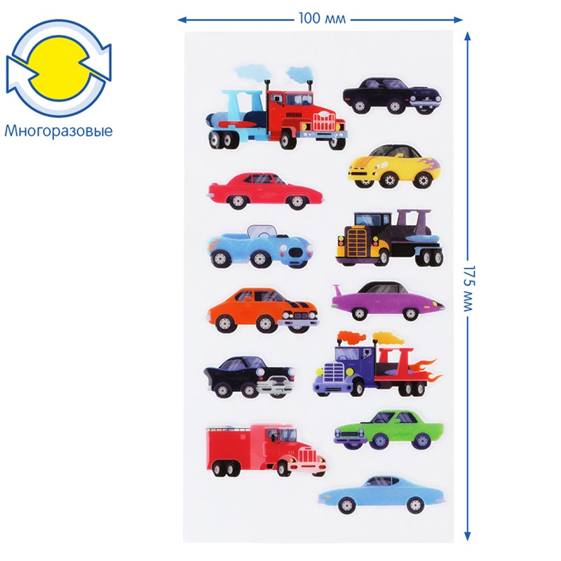 —Наклейки гелевые Мульти-Пульти "Машины" 13шт (ES_40037)