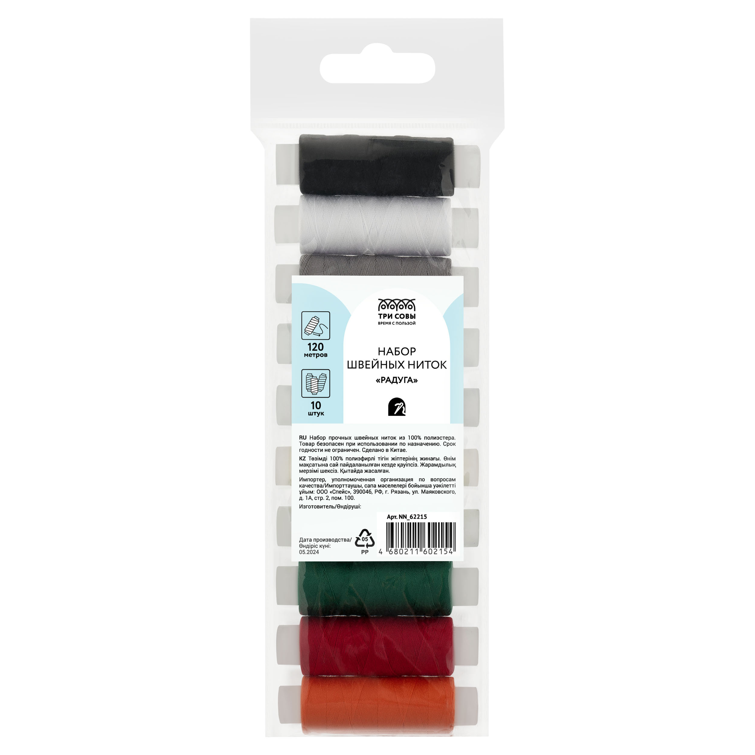 Набор ниток швейных ТРИ СОВЫ, "Радуга" NN_62215