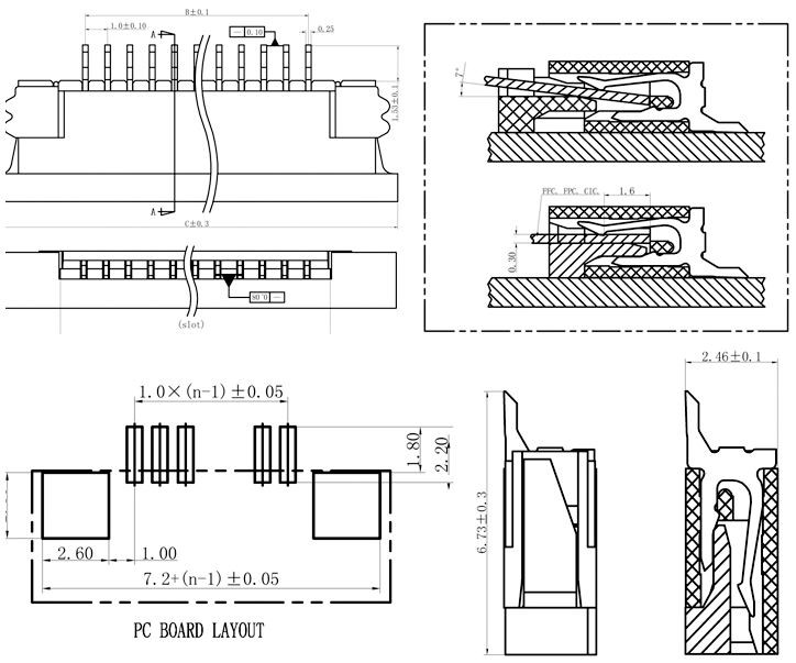 —Коннектор FFC/FPC шлейфа шаг 1.0мм, 8пин, фиксатор выдижной, контакты сверху