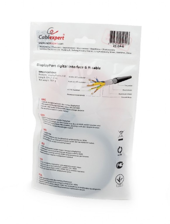—Кабель DisplayPort(m) - DisplayPort(m) 1.8м Cablexpert, черный (CC-DP-6)