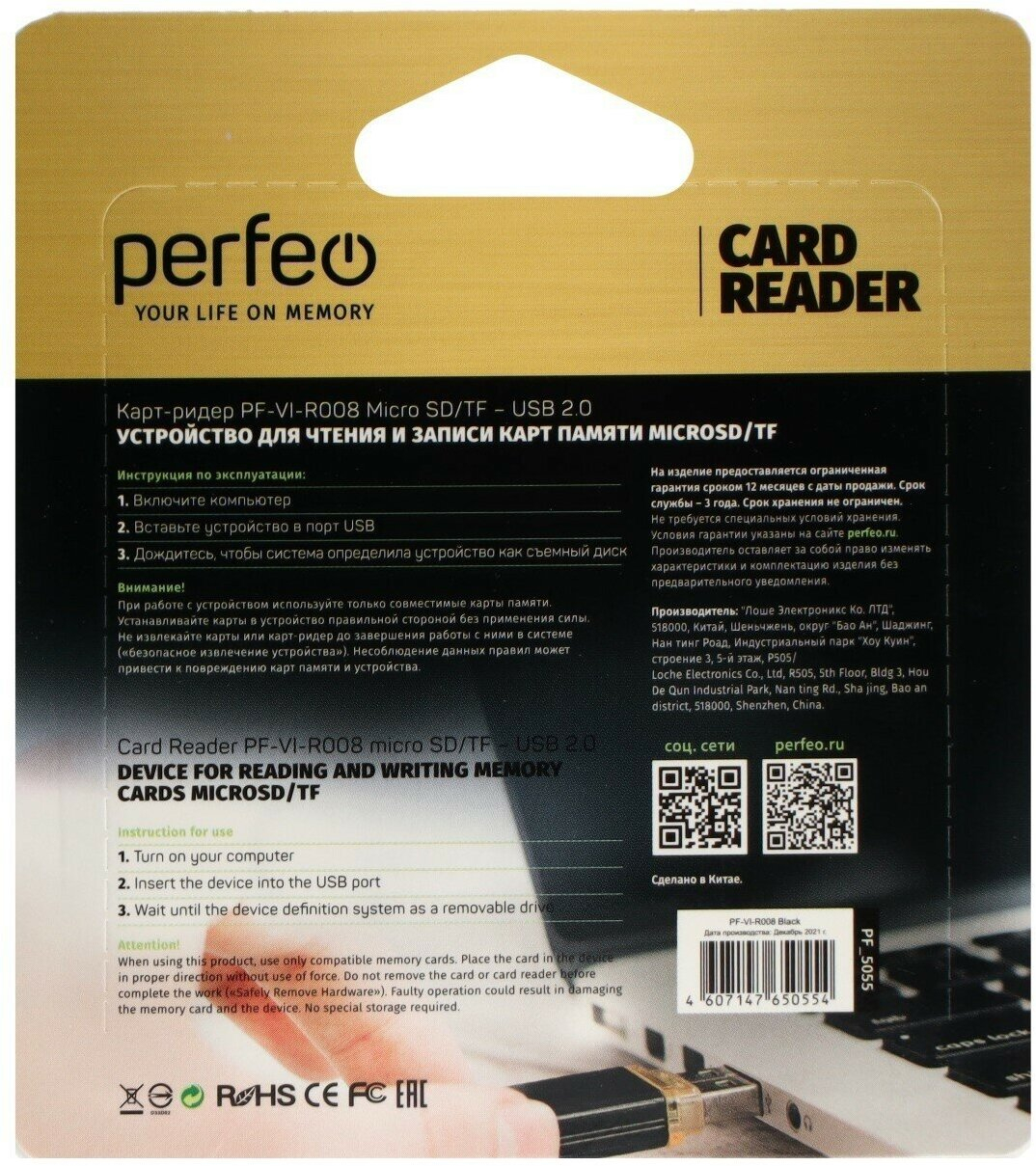 Картридер внешний Perfeo Micro SD PF-VI-R008 черный