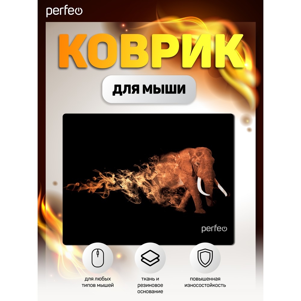 Коврик для мыши Perfeo "Flames", "Слон", (240*320*3 мм), ткань+резиновое основание