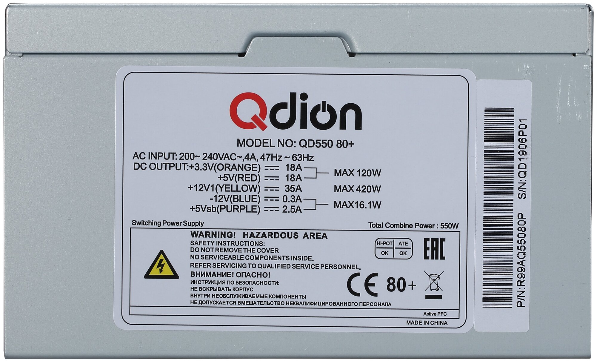 Блок питания 550Вт FSP QDION QD550 80+ (APFC,120мм,1PCI-E,5SATA,80+)