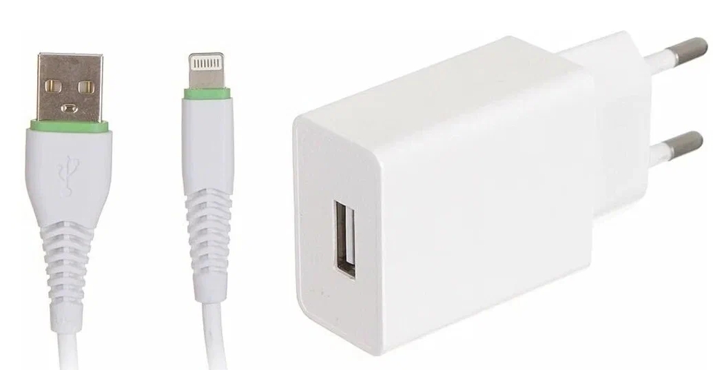 —Зарядное_устройство - USB_2.1A+ кабель Lighting MAIMI T13, белый