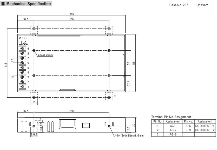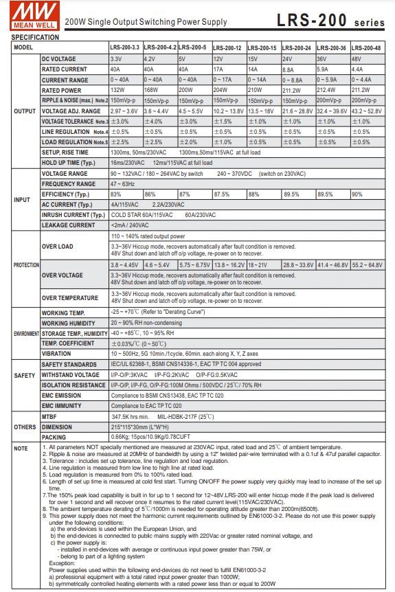 —Блок питания в корпусе 48в, 4.4а, IP20, 215*115*30мм, Mean Well LRS-200-48