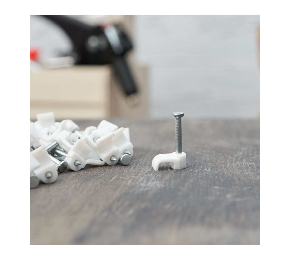 —Крепеж кабеля плоский 5х2мм, уп. 50шт, пластик, белый, -40..+80, гвоздь, Rexant 07-4205