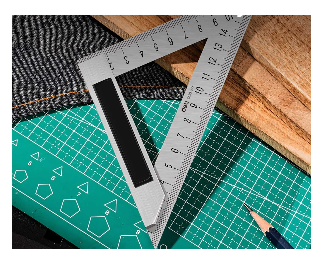 Линейка треугольная 120*170мм(130*180мм), сталь+алюминиевое основание, Deli DL303150