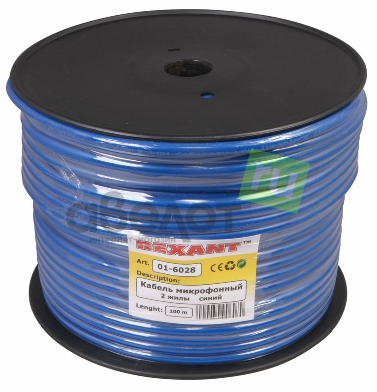 —Кабель микрофонный Rexant 2х0,25мм, OD6,8мм, синий, бухта 100м