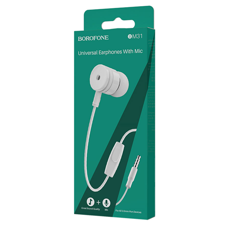 Гарнитура проводная BOROFONE BM31 вставные, кабель 1.2м, белый